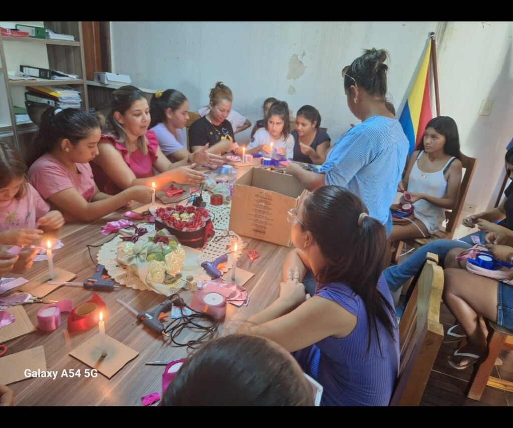 Dejamos las postales de lo que fueron las jornadas de capacitación del curso Rosas Eternas a cargo de la Lic. Wilma Giménez, el Intendente Municipal Dr. Sergio Ferreira agradece el obsequio, felicita a las integrantes de este curso y desea éxito a cada una en sus emprendimientos.