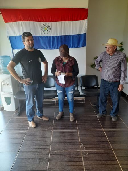 Apoyando el proyecto entrega el Intendente Municipal Sergio Ferreira y reciben en nombre de la Comisión Vecinal el Presidente y la Secretaria; el Sr. Pánfilo Carrillo y Elva Núñez respectivamente.