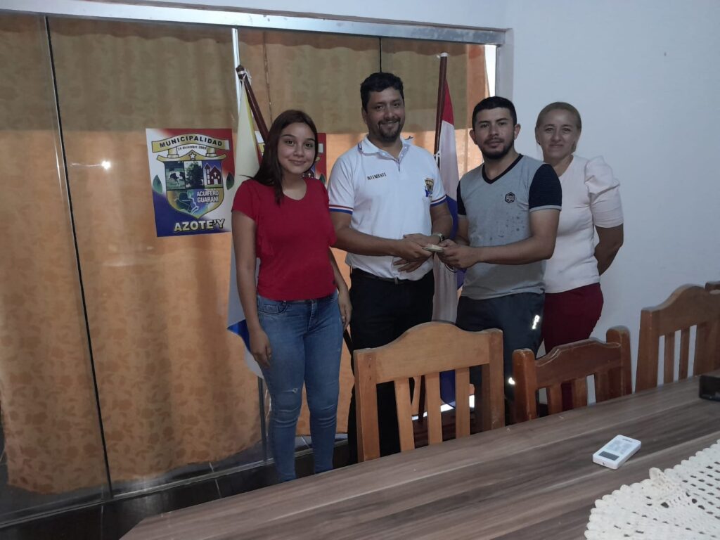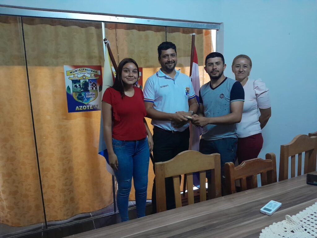 En la mañana de hoy el Intendente Dr. Sergio Ferreira se encargo de atender la visita de los integrantes de la Pastoral Juvenil de la Iglesia San Joaquín & Santa Ana que reciben la donación de 2.000.000 de guaraníes de parte de la Municipalidad, monto que será destinado para la realización del evento por el Día de Reyes Magos organizado por el grupo de jóvenes de la ciudad.