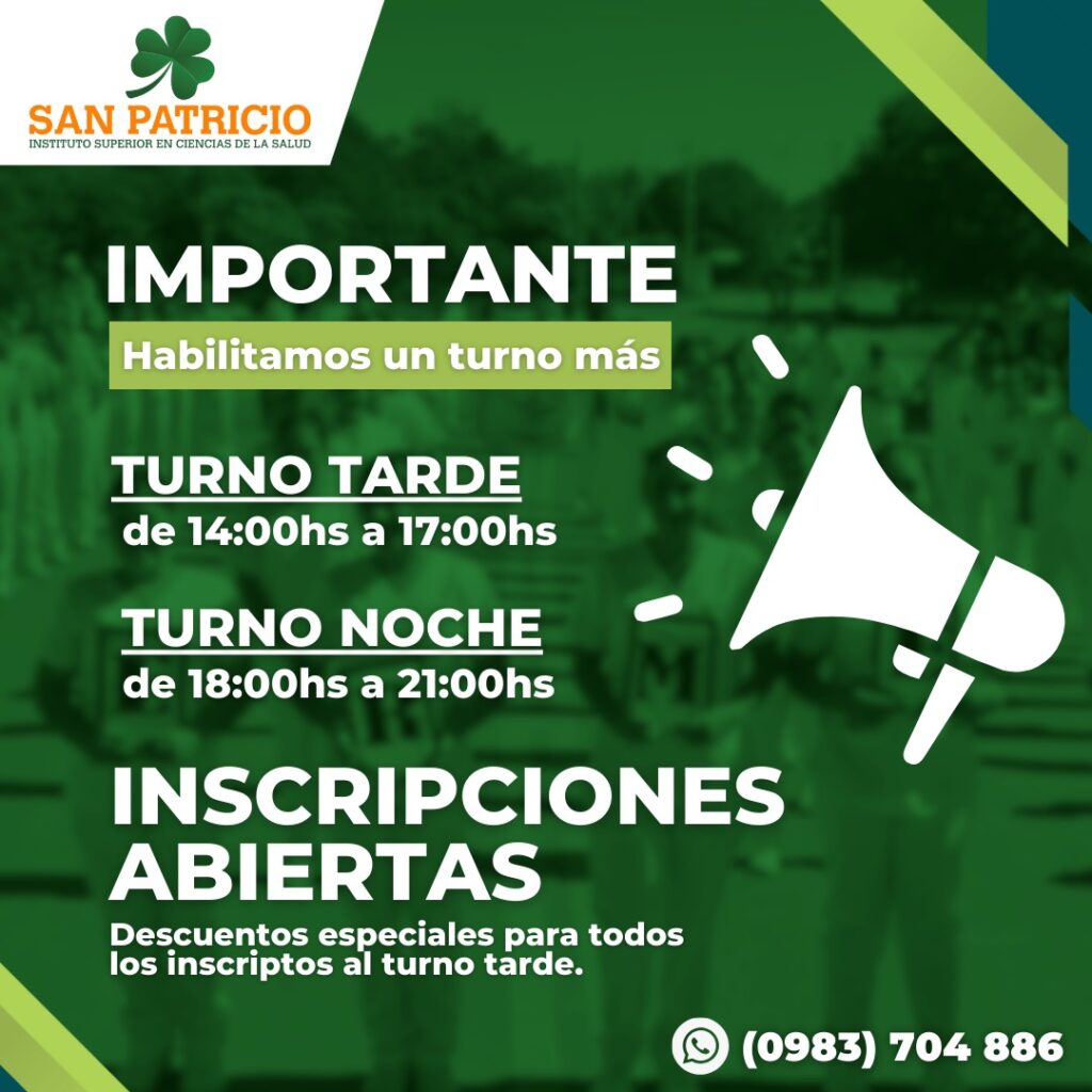 En la mañana de hoy el Director Administrativo Ing. Blas Antonio Duarte y el tesorero Mauro Duarte recibieron la visita de los representantes del Instituto Superior San Patricio; Lic. Glorin Melgarejo, Lic. Emiliano Sotelo y Lic. Leticia Lovera que acercaron a la Institución becas (validas por 1 año) para las siguientes carreras de Licenciatura y Tecnicatura;