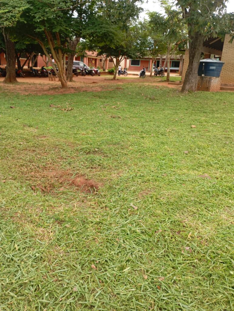 Trabajos de corpida y limpieza del patio e inmediaciones en la Comunidad Educativa Kurusu de Hierro y en la Escuela Básica San Francisco realizado en la mañana ayer y de hoy respectivamente por el funcionario Bruno Ortellado, integrante del Equipo de Aseo & Limpieza de la Municipalidad.