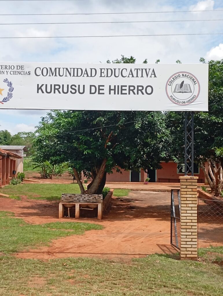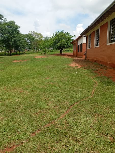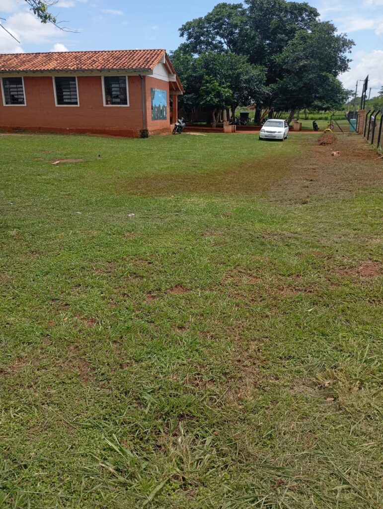 Trabajos de corpida y limpieza del patio e inmediaciones de la Comunidad Educativa Kurusu de Hierro realizado en la mañana de hoy por el funcionario Bruno Ortellado integrante del Equipo de Aseo & Limpieza de la Institución.