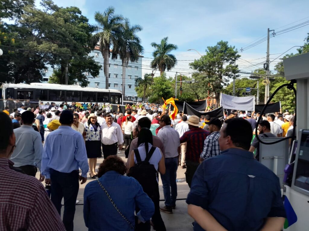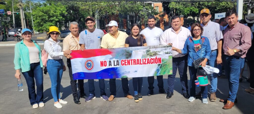En la mañana de hoy el Intendente Municipal Dr. Sergio Ferreira Portillo participa en la movilización en compañía de varios jefes comunales y otras autoridades departamentales y nacionales que se oponen al Proyecto Hambre Cero presentado por el ejecutivo el cual elimina el FONACIDE.