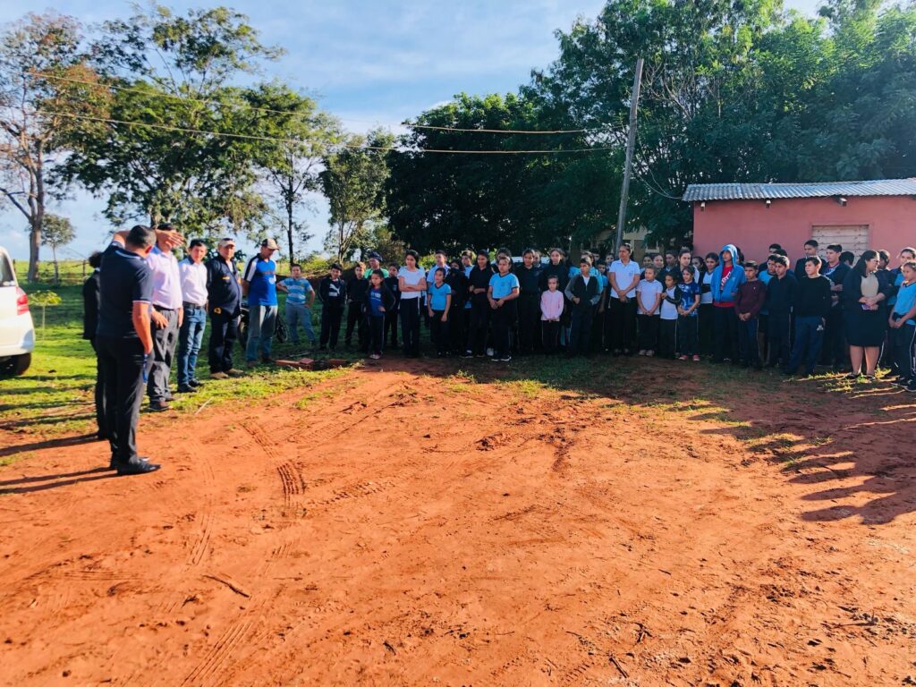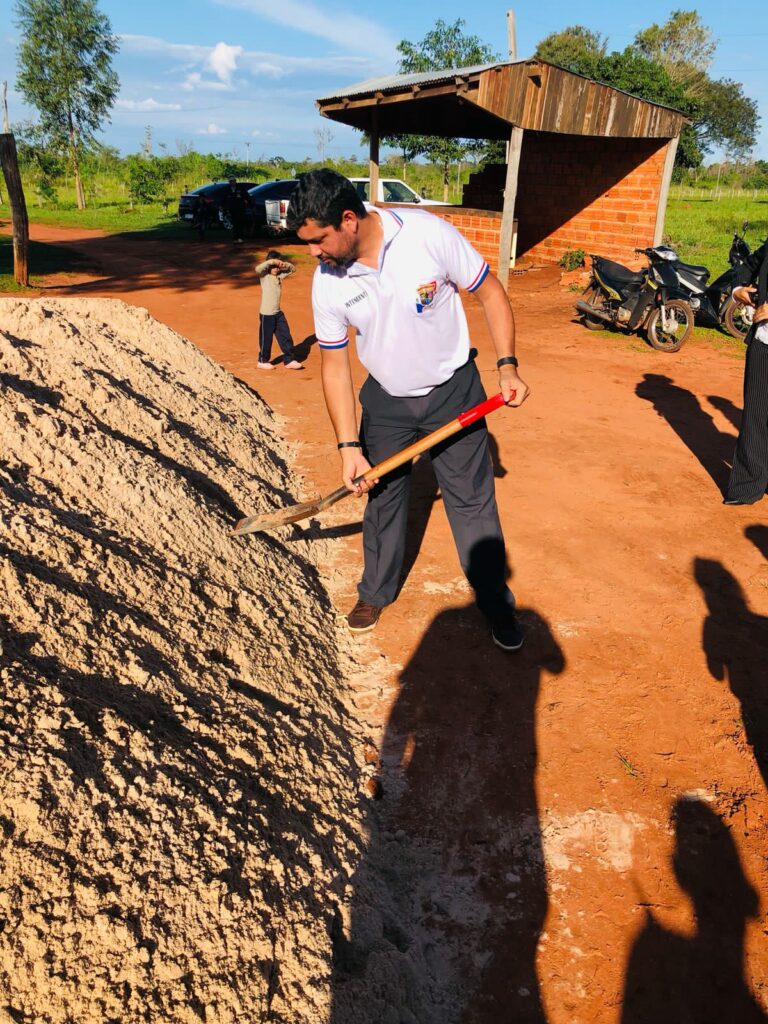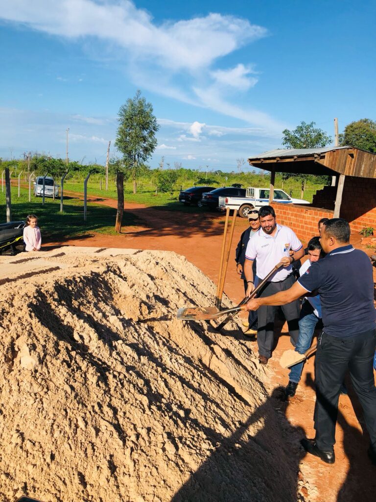 El Intendente Municipal Dr. Sergio Ferreira Portillo, en compañía de los Concejales; Abog. María Duarte e Idilio Godoy, además de los integrantes de toda la Comunidad Educativa de la Escuela Básica N° 4.945 San Francisco de la comunidad de Kurusu de Hierro, llevaron a cabo el Acto de la Palada Inicial para la CONSTRUCCION DE LA COCINA Y COMEDOR.